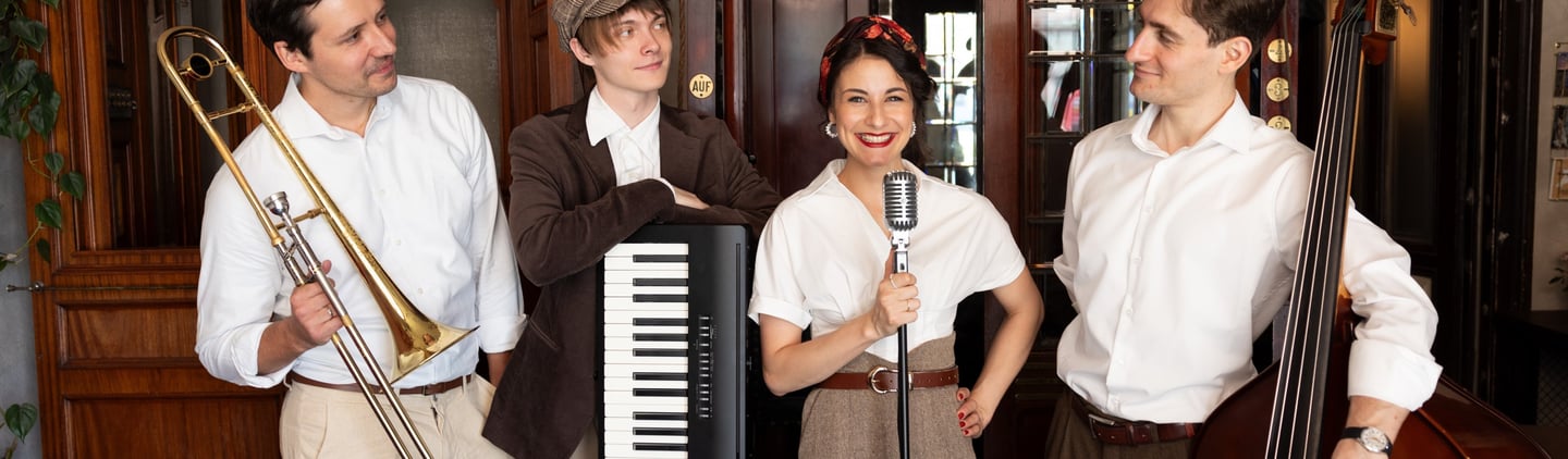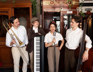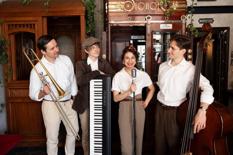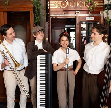 Meet The Zazous, the new swing band in town bringing the golden era of swing to life with energy, elegance, and a rebellious edge. The ensemble fuses expressive vocals, trombone, piano, double bass, and drums to revive classic swing tunes while adding fresh, modern twists. Drawing inspiration from rock ’n’ roll and rhythm and blues, The Zazous blend timeless swing with contemporary grooves, creating a sound that’s both nostalgic and irresistibly vibrant. From beloved standards to hidden gems, they deliver unforgettable performances that get dance floors moving and audiences swinging - wherever they play.